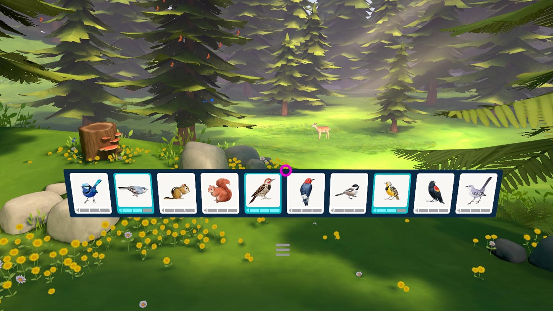 Orchestrate a peaceful forest filled with birdsong and natural ambient sound